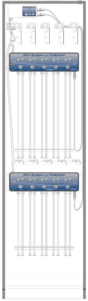 The Dri-Scope Aid® Cabinet supplies HEPA-filtered air or instrument air to all internal channels to aid in drying endoscopes with an automated drying cycle for improved turn-around time, and a continuous venting cycle for overnight storage. The Dri-Scope Aid® Cabinet converts your scope cabinet into a complete drying system.